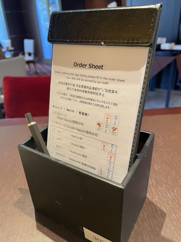 こちらのオーダーシートに希望のものをチェックし、スタッフさんに渡すとオムレツを焼いてくれます。中はとろとろでした!